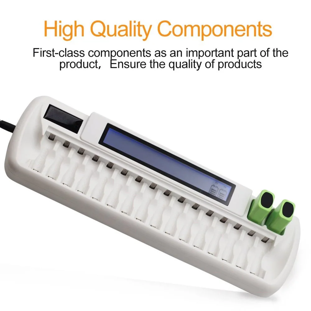 Beste Koop OEM Fabriek Gecertificeerd 16 slots LCD Smart Lader Voor AA AAA NI MH NI CD Oplaadbare Cellen Batterij 16 banken met US EU Plug Goedkoop.