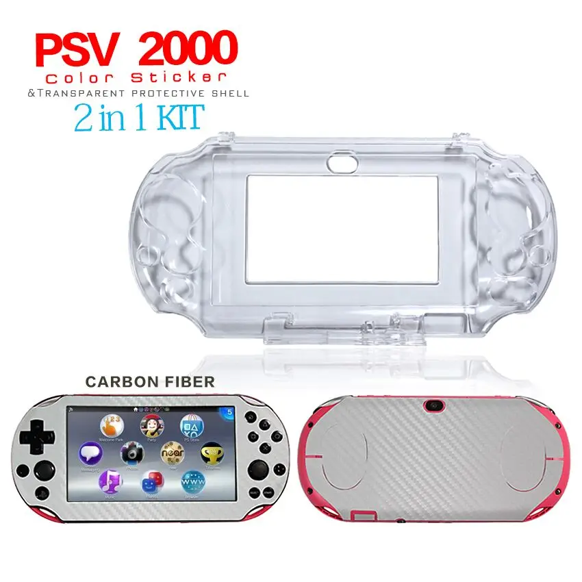 Beste Kopen Ivoor Koolstofvezel Skin Sticker + Clear Beschermhoes Shell voor Sony PS Vita 2000, skins Stickers voor PSV2000 Goedkoop